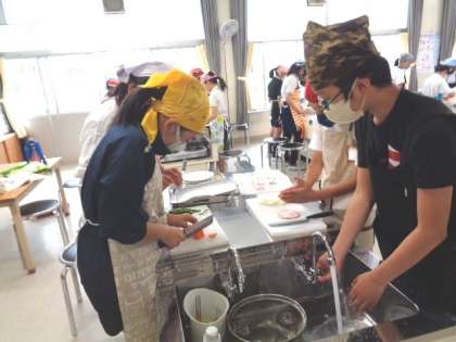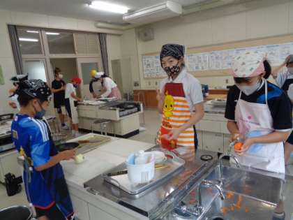にんじん、ピーマンなど、協力しながら準備していました。