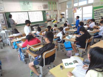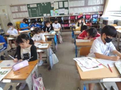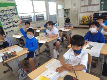 5/29 国語(3年生) 公開日 2023/05/29 更新日 2023/05/29 校長室から 「自然のかくし絵」 教科書を読んで、コノハチョウの身の隠し方を考えます。 段落ごとに、書いてある内容をまとめながら読み取っていました。