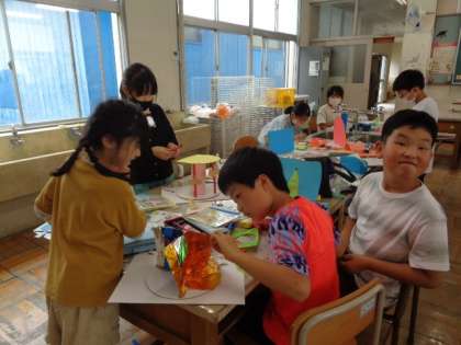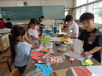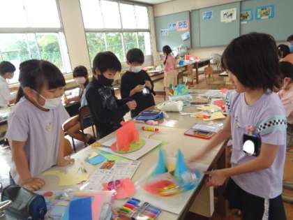 色画用紙や折り紙を使って、いろいろな工夫を楽しんでいました。