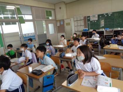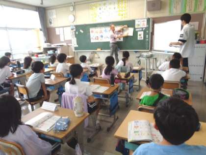 6/6 外国語活動(4年生) 公開日 2023/06/06 更新日 2023/06/06 校長室から 「What day is it?」 ALTの先生と一緒に学習です。 曜日のカードを見ながら、英語で話していました。