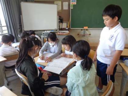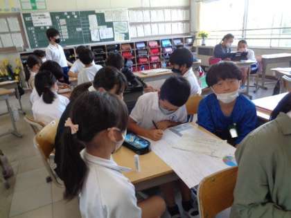 調べるテーマを決めて、みんなで調べたり、話し合ったりしていました。