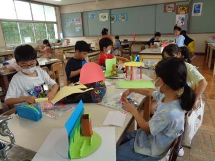 それぞれのアイデアを生かして、楽しそうに製作していました。