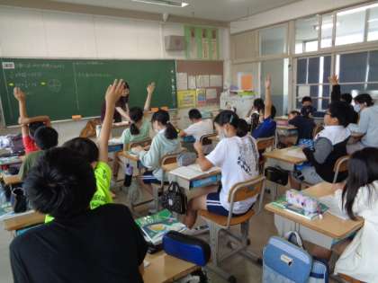 6/12 算数(6年生) 公開日 2023/06/12 更新日 2023/06/12 校長室から 「分数×分数」 分数で表された時間について学習します。 『4分の3時間は何分?』『20分は何時間?』など、具体的に考えていました。