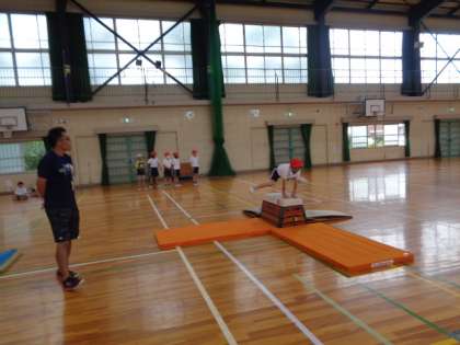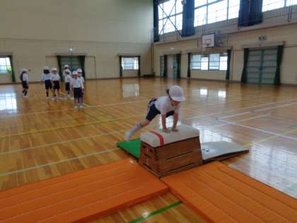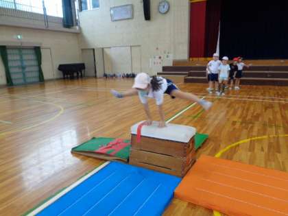 とび箱に取り組んでいます。 たてと横、両方で挑戦していました。