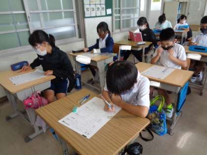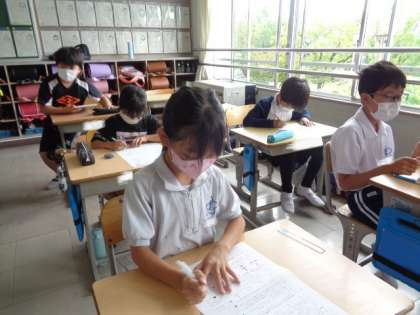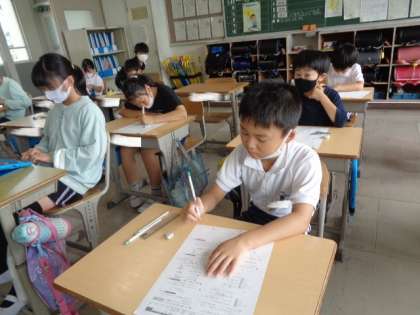 「1けたでわるわり算の筆算」 単元のまとめテストです。 みんな真剣に取り組んでいました。