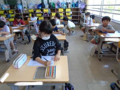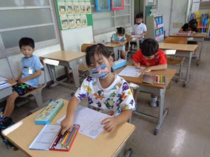 プリントでひらがなの練習です。 「せ」の字を練習した後、「せ」のつく言葉を書いていました。