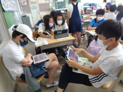 6/19 体育(5年生) 公開日 2023/06/19 更新日 2023/06/19 校長室から マット運動で、側方倒立回転に取り組むそうです。 タブレットで、お手本の動画を見たり、練習方法を調べたりしながら、グループでめあてを決めていました。