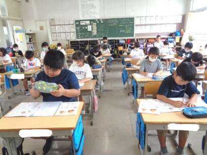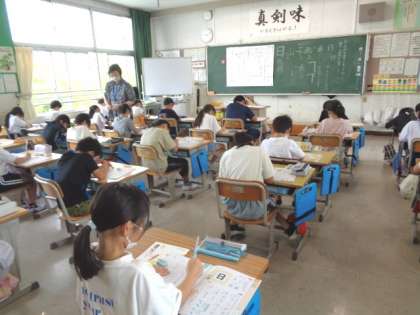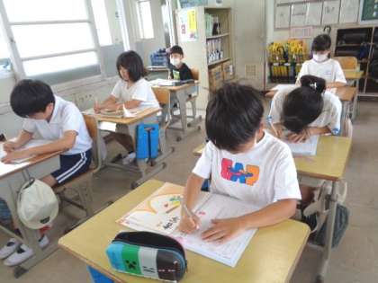 硬筆の学習です。 手紙の書き方について学ぶとともに、お手本を見て実際に書いてみていました。