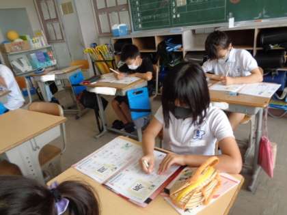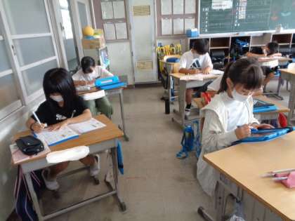 硬筆の学習です。 部分の組み立てを意識しながら練習していました。