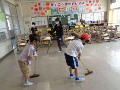 6年生がリーダーとなって、たてわりでの清掃を行っています。