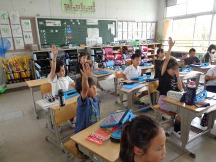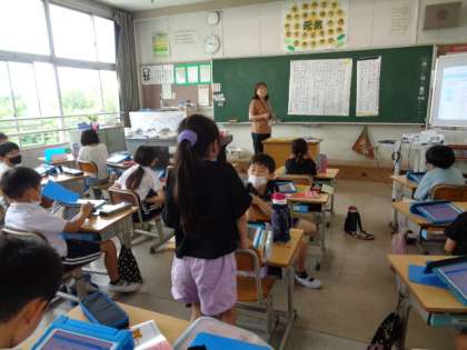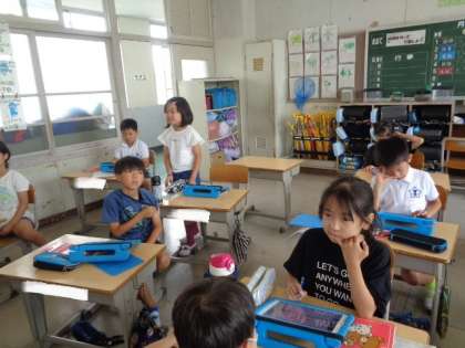 6/27 国語(2年生) 公開日 2023/06/27 更新日 2023/06/27 校長室から 「ことばで絵をつたえよう」 文章を聞いて、タブレットで絵を描きます。 できた絵を見比べながら、わかりやすい説明について考えていました。