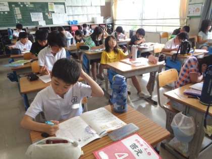 算数の友(問題集)を使って復習です。 それぞれのペースで、がんばって進めていました。