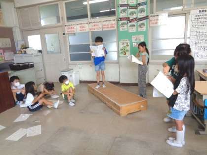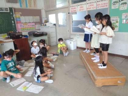 6/28 国語(2年生) 公開日 2023/06/28 更新日 2023/06/28 校長室から 「名前を見てちょうだい」 グループごとに、音読の発表です。 声の大きさや速さを考え、動きもつけながら演じていました。