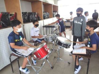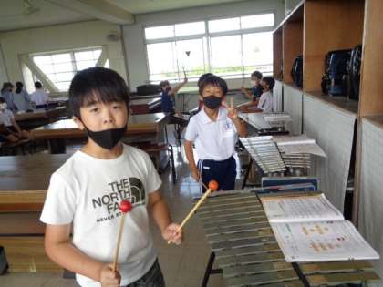 太鼓、木琴、鉄琴、オルガン、タンバリンなど、それぞれがいろいろな楽器を担当し、練習をしながら演奏を楽しんでいました。