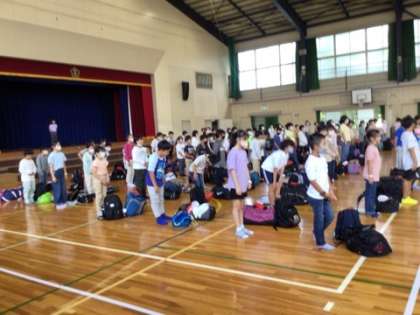 全員そろって、出発式を行いました。 元気よく出発です。 *準備等、ご協力ありがとうございました。