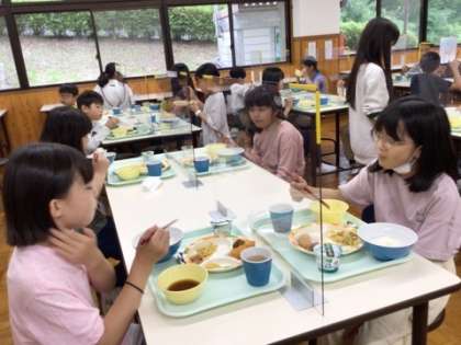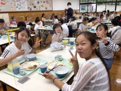 今日のメニューは、ごはん、味噌汁、ミートボール、魚フライ、ポテト、野菜、ヨーグルトでした。