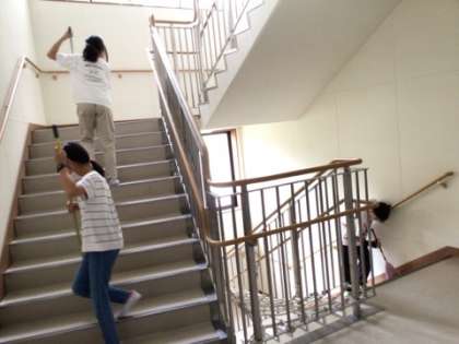お世話になった宿泊棟をみんなで片付け、清掃です。