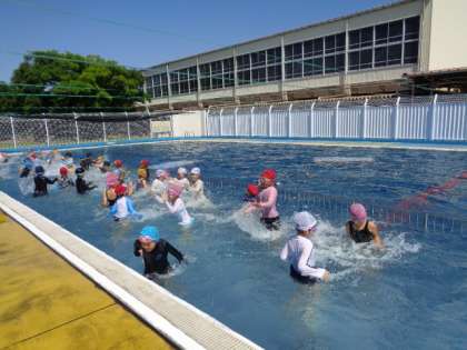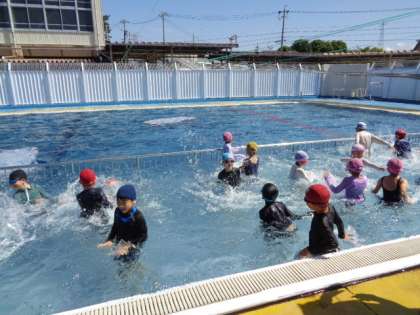 水泳の学習です。 水中タッチ・水中じゃんけんなど、みんなで楽しく活動していました。