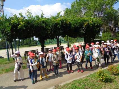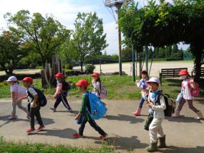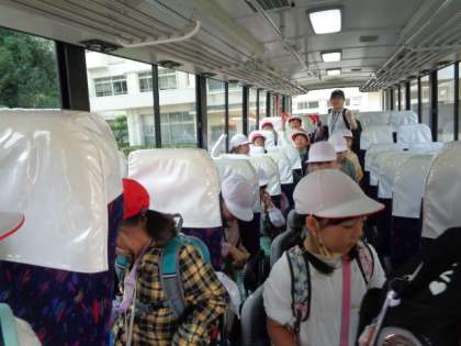 校外学習として、トヨタの森で自然体験学習を行っています。 マイクロバスで、元気に出かけました。