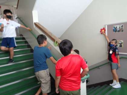7/12 図画工作(6年生) 公開日 2023/07/12 更新日 2023/07/12 校長室から 「ここから見ると」 見る場所によって見え方の違う作品を考え、校内のいろんな場所に設置していました。 いろいろなアイデアが楽しいですね。