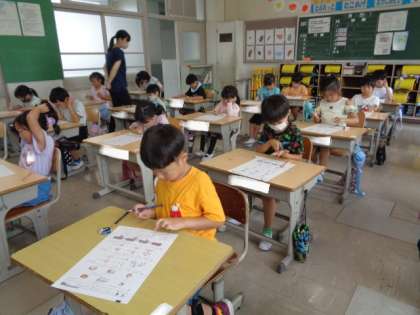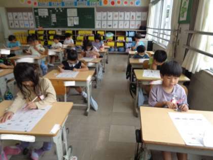 「いろいろなかたち」「ふえたりへったり」 単元のまとめテストです。 みんな真剣に取り組んでいました。