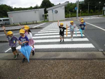 豊田市交通安全学習センターでは、幸い雨もなく、市街地を模擬したゾーンで、実際に活動しながら交通ルールを学ぶことができました。