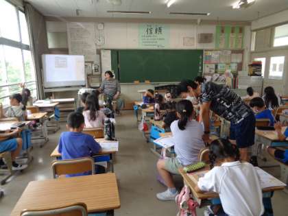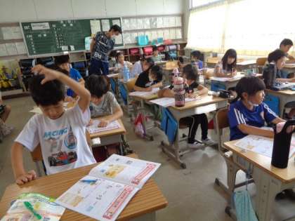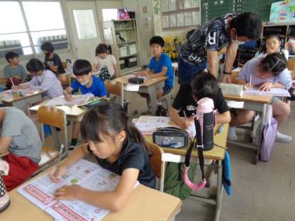 ローマ字の学習です。 テキストを使って、「や・ゆ・よ」のつく音のローマ字を練習していました。