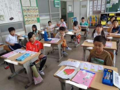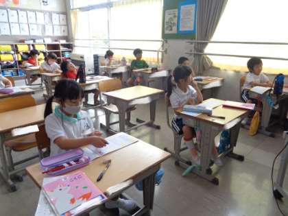 9/5 国語(1年生) 公開日 2023/09/05 更新日 2023/09/05 校長室から ドリルを使って、漢字の学習です。 空書きをしたり、ドリルに書き込んだりしながら、がんばって練習していました。