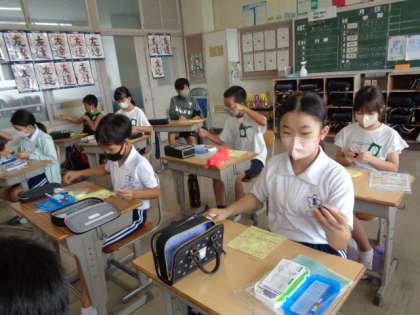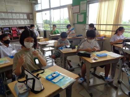 9/6 家庭科(5年生) 公開日 2023/09/06 更新日 2023/09/06 校長室から 「ひと針に心をこめて」 玉結びと玉止めのテストをするそうです。 学習したことを思い出しながら、練習していました。