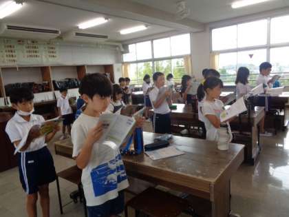 9/6 音楽(4年生) 公開日 2023/09/06 更新日 2023/09/06 校長室から 「ゆかいに歩けば」 旋律の特徴を生かして歌う練習です。 声の大きさやテンポなど、歌い方を工夫していました。