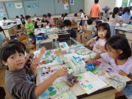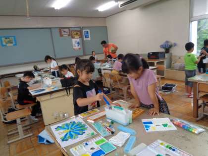 9/8 図画工作(2年生) 公開日 2023/09/08 更新日 2023/09/08 校長室から 色づくりを楽しみながら、クジャクの羽根を彩色します。 絵の具がはみ出ないように、ていねいにぬっていました。