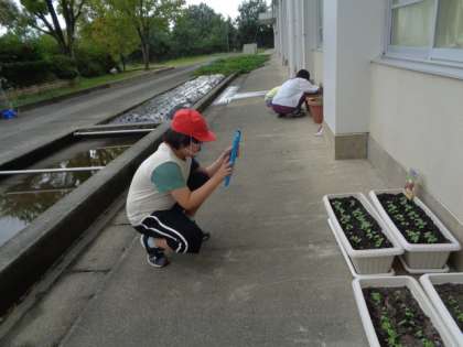 9/8 学習風景(6,7,8,9,10組) 公開日 2023/09/08 更新日 2023/09/08 校長室から 小松菜、ラディッシュ、サニーレタス等、栽培活動を行っています。 水をあげたてお世話をしたり、写真を撮って観察したりしていました。