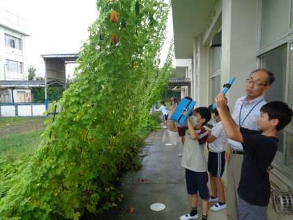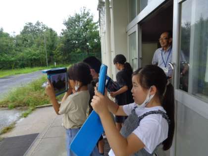 9/11 理科(3年生) 公開日 2023/09/11 更新日 2023/09/11 校長室から 「植物の育ち方」 気温と動物や植物の様子を調べています。 タブレットで写真をとりながら、観察をしていました。