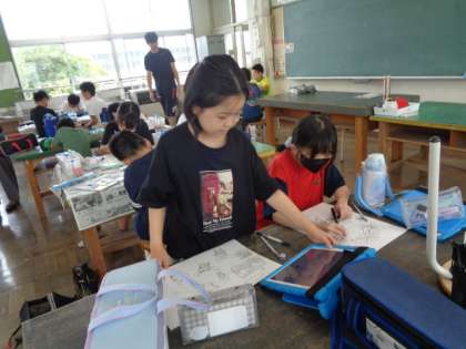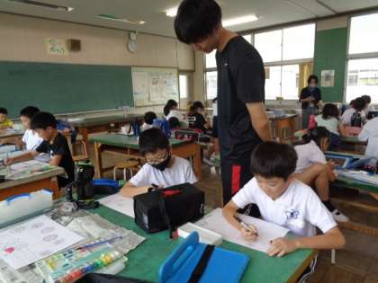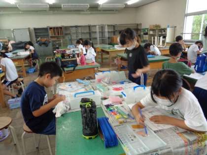 夏休みの思い出を絵にするそうです。 それぞれが自由に描き、彩色していました。