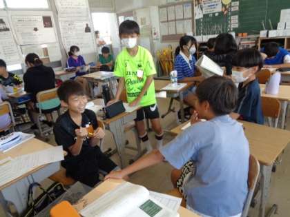 旅行に行く場所について、学習したことを生かして、グループで話し合い活動です。