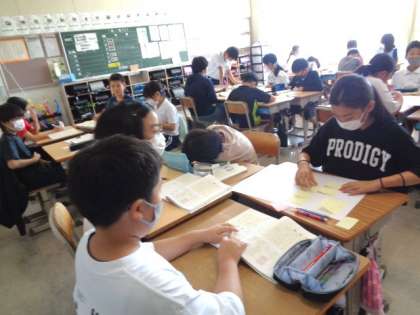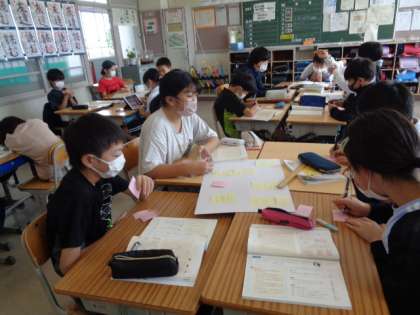 9/15 国語(5年生) 公開日 2023/09/15 更新日 2023/09/15 校長室から 「問題を解決するために話し合おう」 授業での発言を増やすことについて話し合うそうです。 原因や解決法など、付箋を使って出し合っていました。