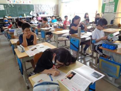 9/19 道徳(4年生) 公開日 2023/09/19 更新日 2023/09/19 校長室から 「がむしゃらに」 大相撲の力士のお話を読んで、『希望と勇気』をもって、目標に向かってがんばることについて、みんなで話し合いました。