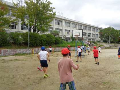 少しだけ、涼しい日になりました。 たくさんの児童が、校庭に出ていろいろな遊びを楽しんでいました。