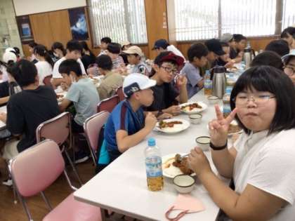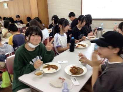 昼食はカツカレー、食事の後、みんなで清水寺を見学します。
