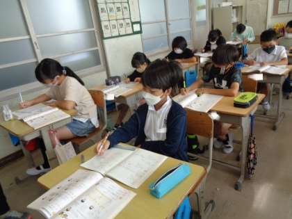 9/27 算数(4年生) 公開日 2023/09/28 更新日 2023/09/28 校長室から 「2けたでわるわり算の筆算」 3桁÷2桁の問題に挑戦していました。 見当をつけながら、筆算で解いていきます。
