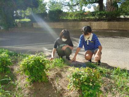 フラワー委員会の児童が、花壇の草取りをしてくれていました。 どうもありがとう。きれいになりました。