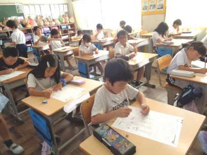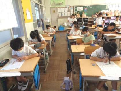 はやく終わった児童は、プリントや問題集にも取り組んでいました。