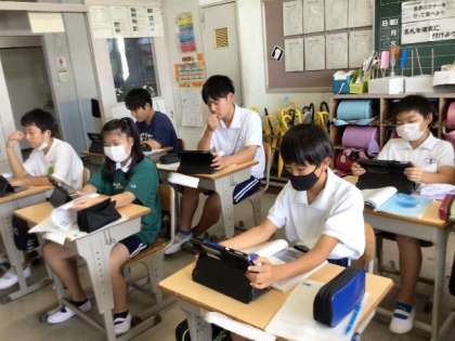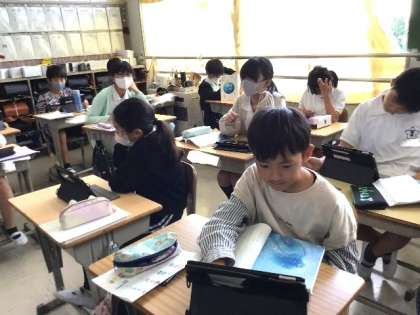 10/10 国語(6年生) 公開日 2023/10/10 更新日 2023/10/10 校長室から 「海のいのち」 物語を読んで、考えたことを伝え合う活動です。 登場人物が、『クエ』を『海のいのち』ととらえた理由について考えていました。