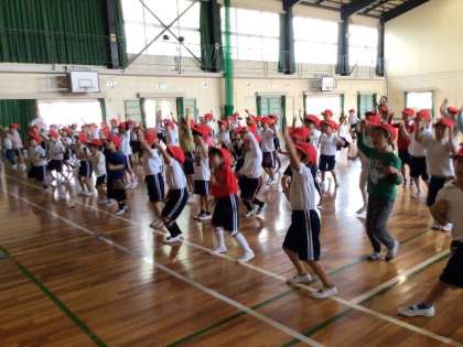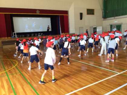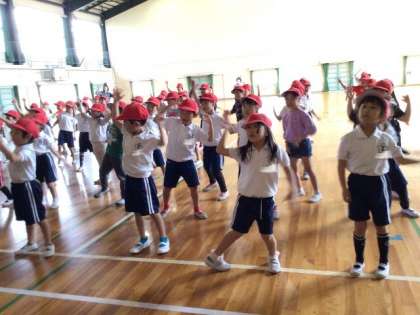 運動会の練習です。 初めて学年で一緒に踊りましたが、みんなとても楽しそうでした。