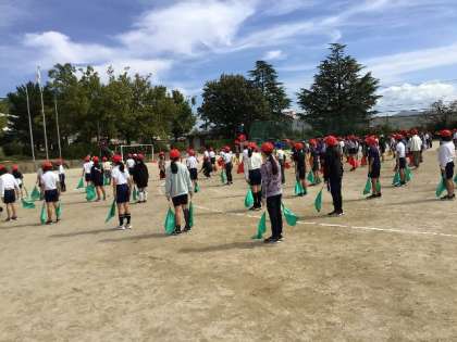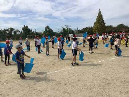 運動会の練習です。 動きのタイミングや旗の動きなど、みんなで合わせながらがんばっています。