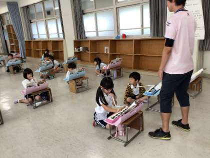 歌と鍵盤ハーモニカで音楽を楽しみます。