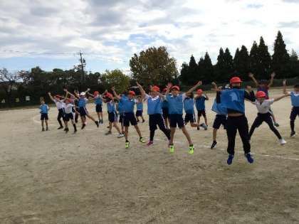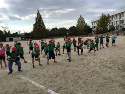 運動会の練習です。 それぞれが、ポーズを考えたり、声を出したりしながら、元気に活動していました。