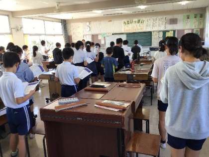 「星の世界」 歌声の重なりを感じながら合唱する学習です。 いろいろな響きを感じながら歌っていました。