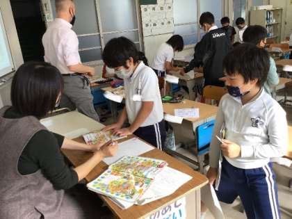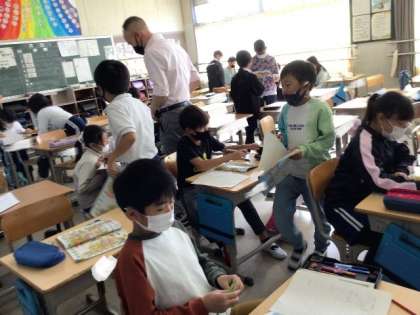 10/30 外国語活動(4年生) 公開日 2023/10/30 更新日 2023/10/30 校長室から 「Do you have a 〜?」 ALTの先生と一緒に学習です。 友だちや先生との会話に挑戦していました。