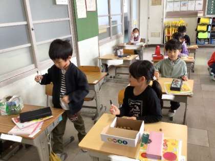 11/9 生活科(1年生) 公開日 2023/11/10 更新日 2023/11/10 校長室から 「どんぐりごまをつくろう」 どんぐりとつまようじを使って作ります。 顔を描くなどして、楽しそうに取り組んでいました。